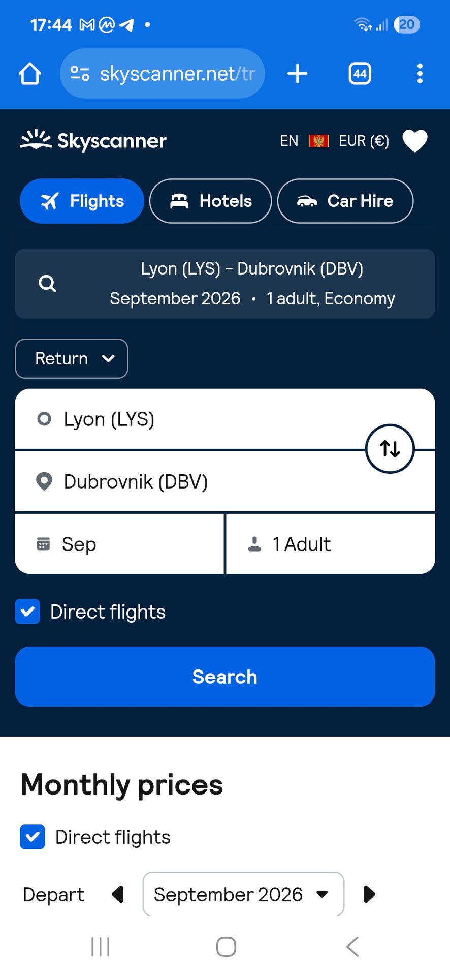 - Sur Skyscanner, entrez votre ville de départ en France (Paris, Lyon, Nantes …), puis comme destination Tivat (TIV), Dubrovnik (DBV) ou Podgorica (TGD). Vous trouverez plus bas 🔽 les aéroports depuis la France, et les destination correspondante.